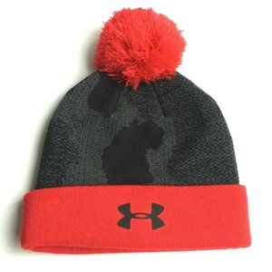 Under Armour Winter Hat Toque Youth Women's Sm Pom Beanie Red Black Unisex Cold
