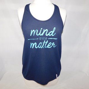 This Womens Small Under Armour Heat Gear Blue Graphic Activewear Running MIND OVER MATTER Tank Top is in Great clean bright condition. Tank is Machine washable. Features sheer mesh like fabric.