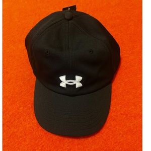 Under Armour black and white logo blitzing piqué baseball cap, new with tags. Soft, breathable fabric made of poly, rigid curved visor, adjustable tab with buckle. Marked One size. This item comes from a smoke free, pets friendly home. Recycled bags/box used when possible. Please, let me know if you'd like any additional pictures and/or measurements or other info. Thanks for looking!
