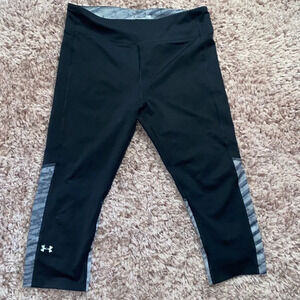 ♠️🤍comfy cool squat proof Under Armour heat gear cropped leggings Sz L minimal dot stains photographed same day shipping from smoke free home