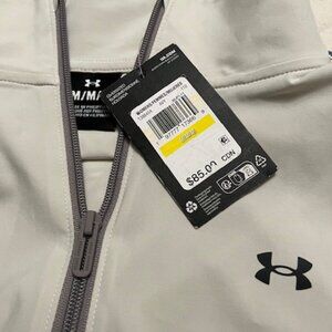Size M. Colors: light grey two tone. Material 87% polyester, 13% elastane. Oversized fit. Arm pit to arm pit measurement 26”. Shoulder to hem measurement 27”. Zip midway down the front. Elasticized at cuffs and bottom to protect against the wind. 2 slanted side pockets at the front with meshed lining. NWT.