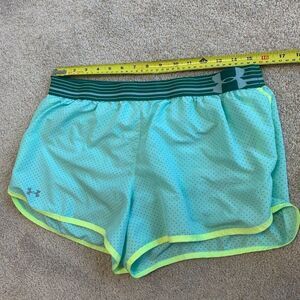 Under Armour pastel green mesh running shorts . Size tag removed so please confirm with photo measurements