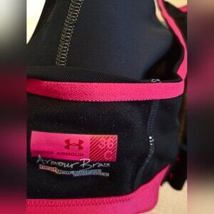 Under Armour women's size 36C black with pink sports bra EUC