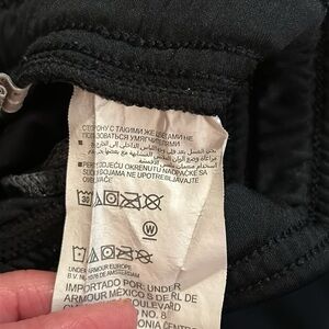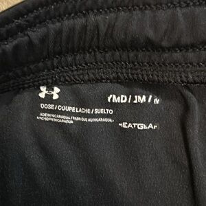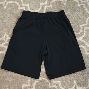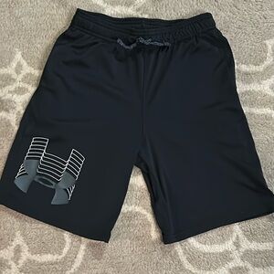 Under Armour, youth size medium (8) black long basketball shorts with side pockets. Lightweight. Drawstring elasticized waist.