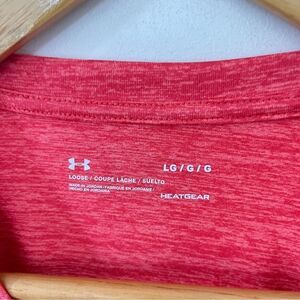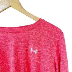 Under Armour, coral, coral orange, bright orange, vibrant tone, athletic wear, long sleeve, crew neck, fitted shirt, performance tee, stretch fabric, moisture-wicking, quick-dry, breathable material, lightweight feel, workout-ready, gym essential, activewear staple, sporty and bold, training top, running shirt, base layer, layering piece, cool-weather workout gear, outdoor active, spring training, fitness-first, bold color lover, sporty minimalist, weekend athlete, gym enthusiast, trail runner, team sport player, stylish lifter, athletic commuter, comfort-focused dresser, active lifestyle, functional fashion, modern performance wear, sleek and energetic.