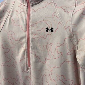tiny bit of staining on end of sleeve. Step up your workout wardrobe with this vibrant Under Armour ladies' workout long sleeve in a delightful pink hue. Tailored for a regular fit and designed for the active woman, this piece combines functionality with style. The size small garment is crafted to offer unrestricted movement, making it an ideal companion for your fitness routine.Featuring a convenient zip closure for easy on and off, this top ensures practicality meets performance. The long sleeves provide added warmth for those cooler mornings at the gym or outdoor runs. Embrace the fusion of comfort and chic with this essential workout attire.