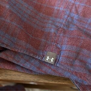 ❤️ Under armour Men's Plaid Button-Up Shirt - Burgundy and Blue loose XL