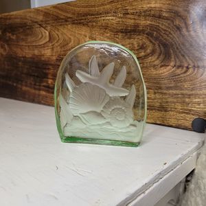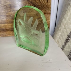 Under the Sea Paperweight Crystal Green Glass Etched Art