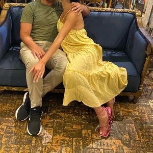 Regular fit. Middle waist. No padded. Unlined. Maxi length. Scoop neckline/u-neckline. 100% cotton. Woven. Solid pattern. Bow knot. Ruffle.