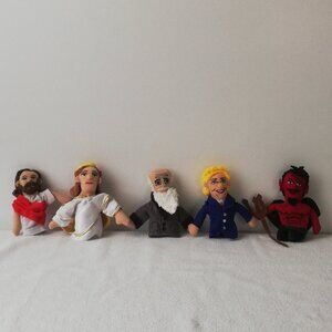 Unemployed Philosophers Finger Puppet Jesus Angel Hillary Clinton Darwin & devil