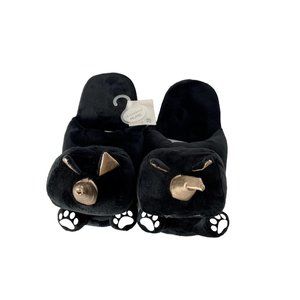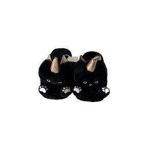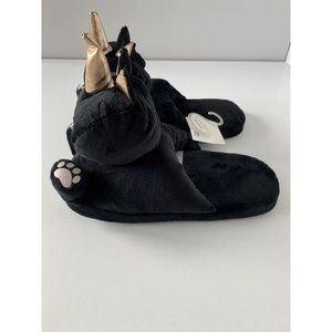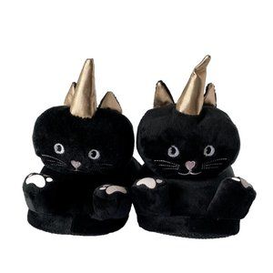 Unicorn Cat Slippers New Ladies Black Cute House Slippers w Grip, Size M/L