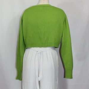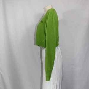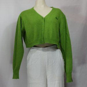 Fuzzy, cropped cardigan with 5-buttons closure and tonal embroidered logo on the chest, 82% Nylon, 18% Angora, Medium -Large Gently used in good condition