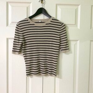 Elevate your everyday style with Uniqlo's 100% wool striped T-shirt, a perfect blend of comfort and chic. Crafted for the modern woman, this medium-sized, offering a timeless look for casual occasions. Experience the softness of pure wool against your skin, while enjoying the versatility of a piece that pairs effortlessly with your favourite jeans or skirts. Uniqlo's commitment to quality and simplicity is evident in this essential garment, designed to become a staple in any wardrobe.Good condition!