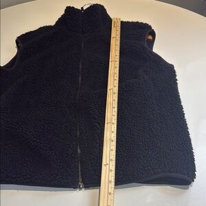 Cozy black fleece vest with a zip-up front. Perfect for layering.