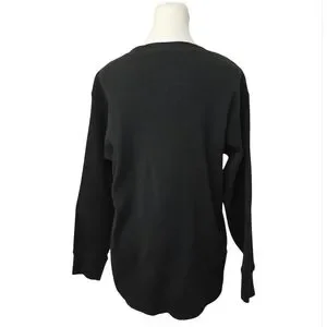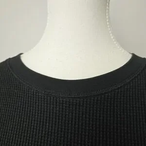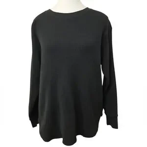 Uniqlo Black Waffle Knit Crewneck Long Sleeve Top Sz XL Textured