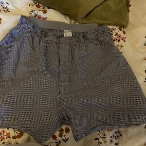 Those are originally labeled as "boxer" but i wore them as shorts and they are very comfy and versatile !! There's an elastic on the waistband and as you can see on the pictures, they are navy blue and white with a square motif on them. They are perfect for summer and are a great piece to have in your wardrobe