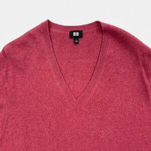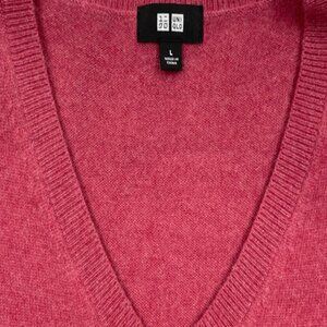 Uniqlo Cashmere Sweater Men's Size Large Salmon Pink Long Sleeve V-Neck