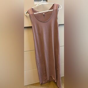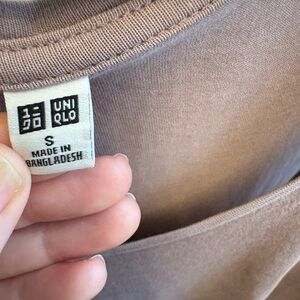 Description: This Uniqlo dress features a sleek bodycon style in a tan and cream color palette, perfect for casual outings. The sleeveless design with a scoop neck offers a modern and comfortable fit, while the midi length adds a touch of elegance.