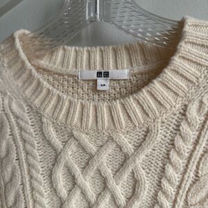 Uniqlo Cream Crew-Neck Long-Sleeved Mini Dress Cable Knit Sweater size S