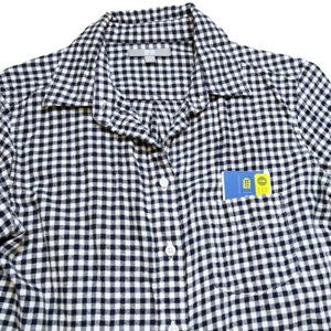Women's Flannel black and white shirt, super comfy. 100% cotton. Easy to dress up and down. Can be worn in multiple different ways: buttoned up, tied at the bottom, open, tucked in, as a jacket, etc.