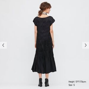 Uniqlo and Ines de la Fressange collab black satin twist pleated short sleeve midi maxi dress new with tags. Gorgeous dress with intricate pleats and flared cut, depending on your height it’d be midi or maxi, please see measurements. Short sleeves, unlined, crinkled texture that could be maintained by storing it twisted, so it’s also great for travelling. Very modern, chic, elegant and summery, it looks almost shiny, great quality. Boho festival vibe. Marked size US S but it's very stretchy and fits bigger sizes wonderfully. All measurements are approximate and taken with the garment laying flat: Armpit to armpit 19’’ (it stretches a lot) Total length 46'’. This item comes from a smoke free, pets friendly home. Recycled bags/box used when possible. Please, let me now if you'd like any additional pictures and/or measurements or other info. Thanks for looking!