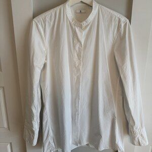 White cotton collarless shirt from collaboration Uniqlo +J (with Jil Sander)