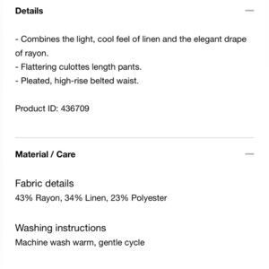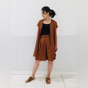 Uniqlo Linen Blend Belted Culotte Shorts, size medium