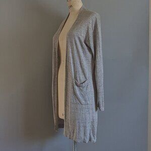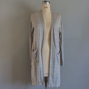 Uniqlo Linen Rayon Long Open Front Cardigan Small Grey Gray
