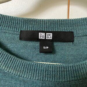 Uniqlo Merino Wool Sweater Womens S Green Knit Crewneck
