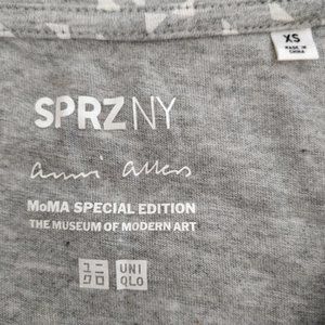 Boxy/oversized fit crew neck tee in Heather Gray with white triangle geometric print. Drop style shoulder and super soft cotton modal blend. Size extra small, from Uniqlo's MoMA special edition collection (SPRZ NY). In excellent condition with no flaws. From a smoke and pet free home.