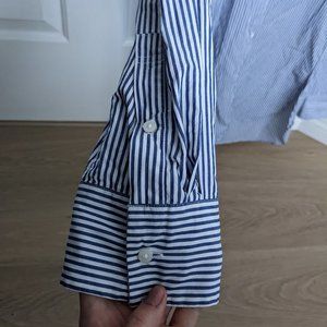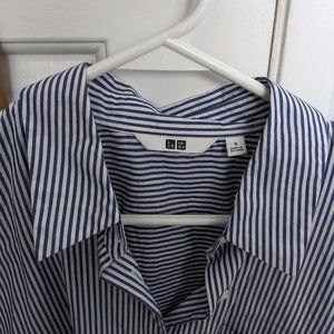 Uniqlo Oversized Blue and White Striped Cotton Button Down Shirt Size Small