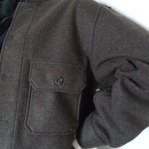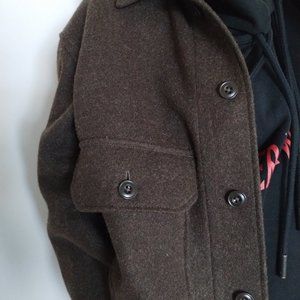 This is an oversized button-up shirt with patch pockets and a straight hem with small slits on each side. It's cozy, soft-brushed fabric made of 52% acrylic, 43 polyester and 5% wool.