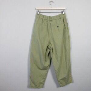Uniqlo Pleated Cropped Pants High Waist Wide Leg Casual Green Linen Rayon 398