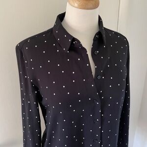 Uniqlo Rayon Blend Black with White Dots Button Down Long Sleeve Shirt Size S