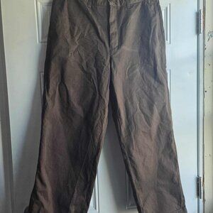 Dark Brown Straight leg chino pants from Uniqlo. 100% Cotton. Waist size 35, pants were slight hemmed and are now 39 inches in length from waistband to very bottom of leg. Only worn once.