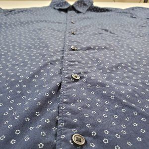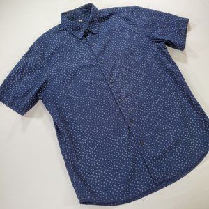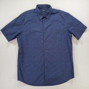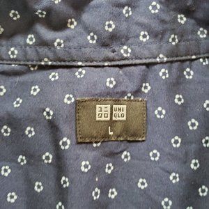 Uniqlo Shirt Men Large Navy Blue Regular Fit Short Sleeve Casual Button Up