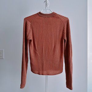 Lightweight extra fine ribbed knit merino pullover sweater in brown.