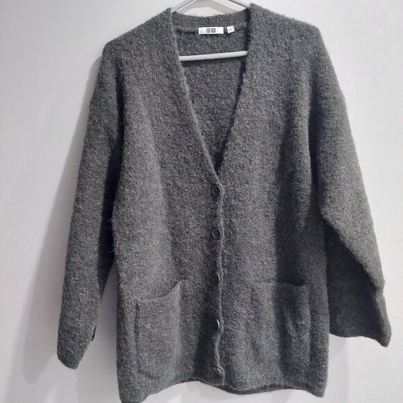 Uniqlo Women's Cardigan Grey Small Alpaca Wool Knitted Button Front Jumper, Sz S