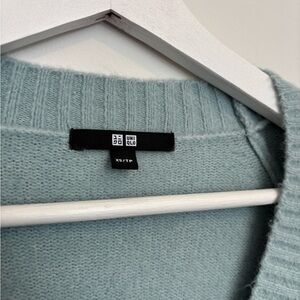 Elegant cardigan with button front. Features ribbed details and front pockets. Perfect for layering.