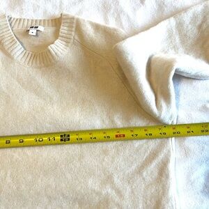 Uniqlo crewneck sweater in cream. Made from soft 100% Wool. Classic fit, raglan sleeves, ribbed trim. Perfect for fall/winter.