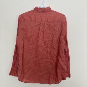 Uniqlo Women’s Linen Shirt Button Up Salmon Dark Pink Red Size L