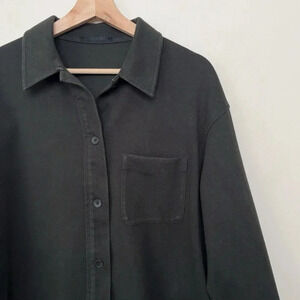 Uniqlo Womens Medium Dark Olive Brush Jersey Button Oversized Shirt
