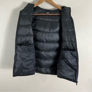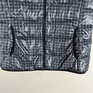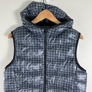 Uniqlo Women’s ULTRA LIGHT DOWN Hooded VEST Size Large Grey Black Checkered