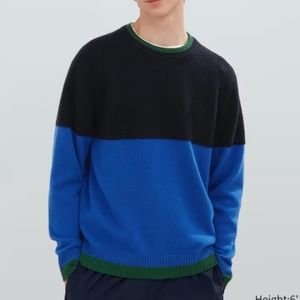Uniqlo and Roger Federer by JW Anderson collab navy blue and green premium lambswool sweater new with tags. Crew neck, long sleeve, made from 100% premium 19.5 micron wool that feels soft (not itchy at all in my opinion), lightweight and airy, yet warm and cozy, vintage inspired. Waffle-stitched yoke to give the material a different look and feel, distinctive eyelet knit look around the shoulders. Colour is accurate in the stock photos, mine are taken in artificial light. Marked size L. All measurements are approximate and taken with the garment laying flat: Pit to pit 23" Total length 27’’. This item comes from a smoke free, pets friendly home. Recycled bags/box used when possible. Please, let me know if you'd like any additional pictures and/or measurements or other info. Thanks for looking!