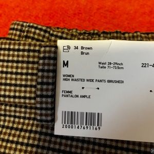 Uniqlo brown plaid check high waisted wide brushed pants NWT