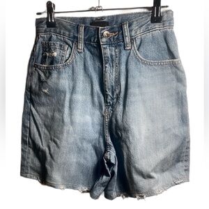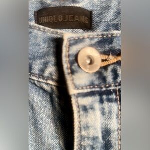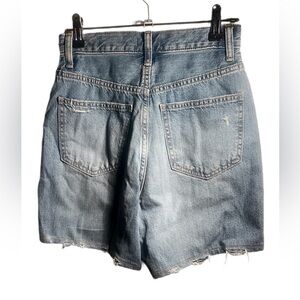 Uniqlo distressed mid rise stretch classic fit cotton blend denim shorts 23
