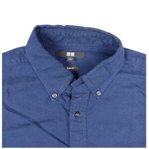 Uniqlo men's navy blue long sleeve slim fit button down polo shirt size S