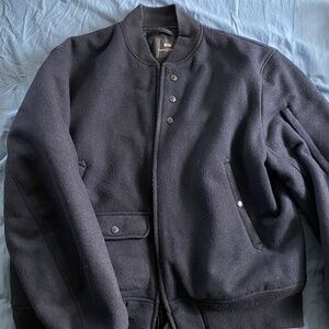 - Ribbed sleeves and hem with a distinctive knit construction.