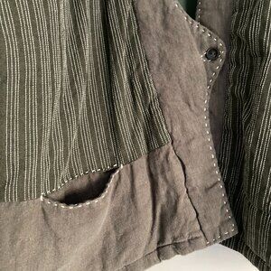 Unique 100% Linen Cotton Quilted Jacket, M (M/L), Army Green