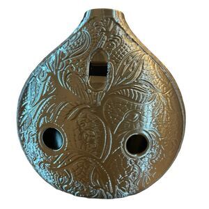 Surprise the music enthusiast in your life with a beautifully crafted 3D-printed Metallic Antique Gold Coloured ocarina! This bottle-shaped Ocarina features an intricate filigree design and is easy to play with 6 holes. Made from sustainable filament, these ocarinas make a delightful gift for musicians, collectors, and those who appreciate unique decor. Comes with an imprinted velvet drawstring bag for storage, and a small card that describes what an Ocarina is on the front, and instructions on how to play on the back. You simply hold the Ocarina in both hands, blow in the top and cover and un-cover the holes to change the notes.